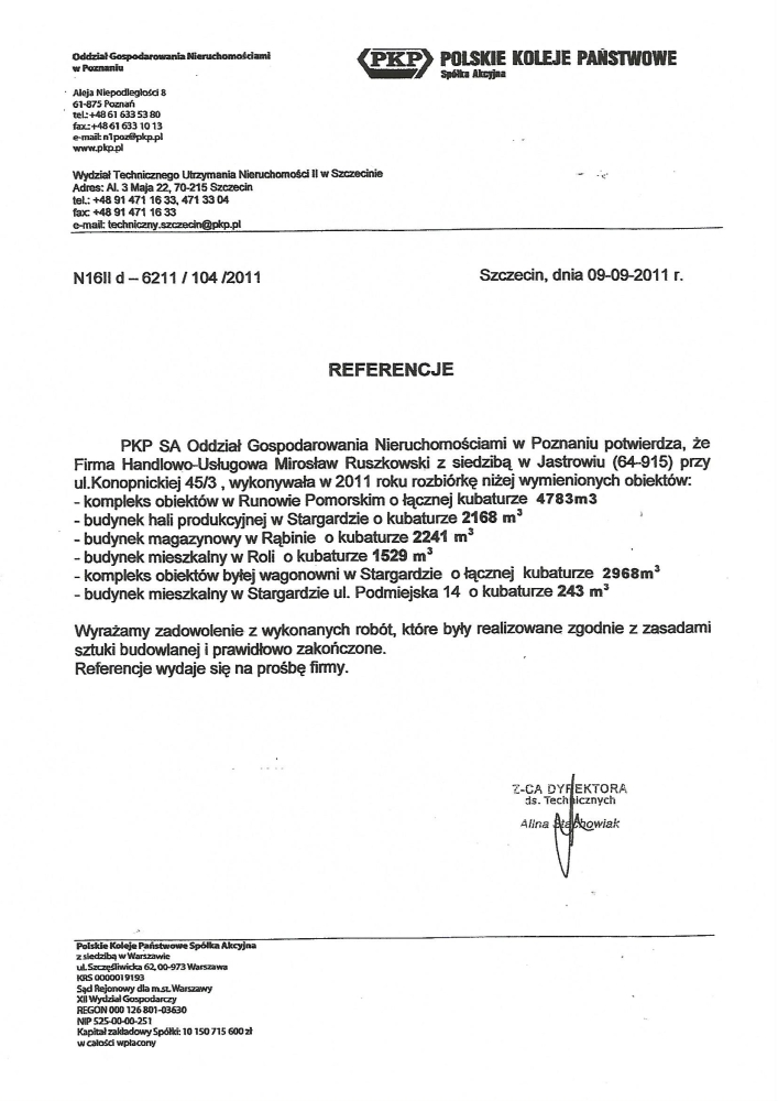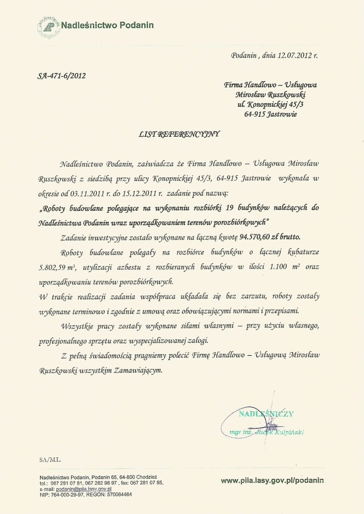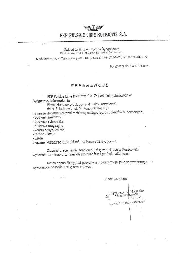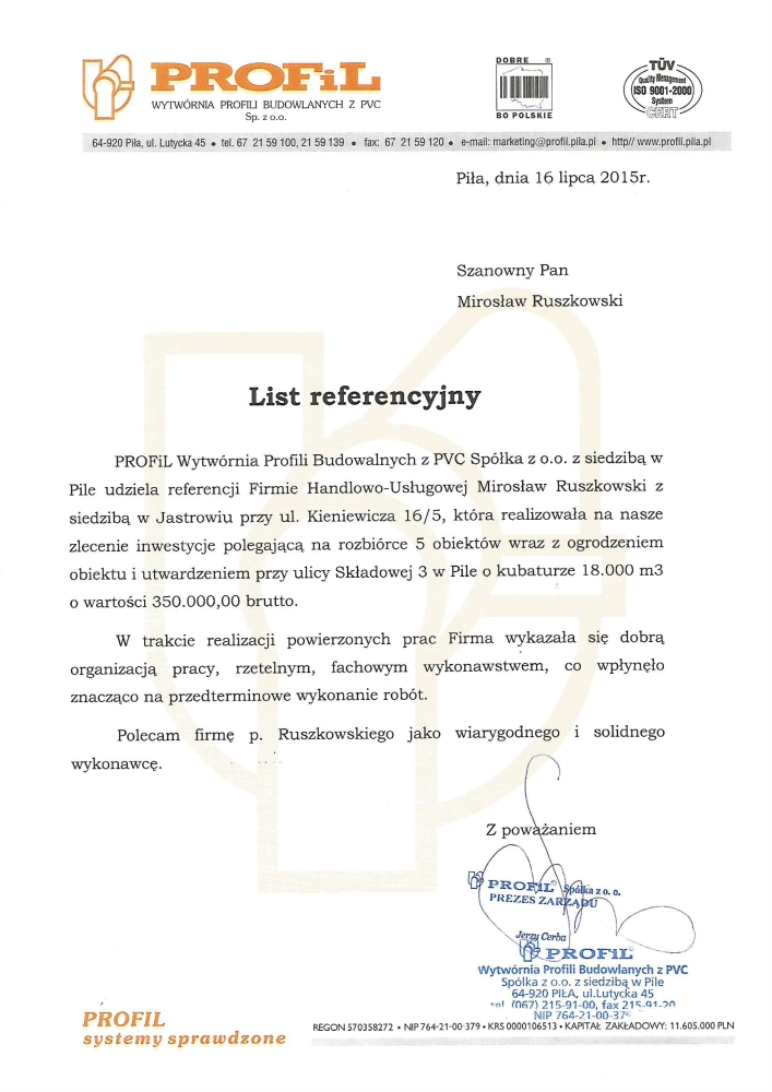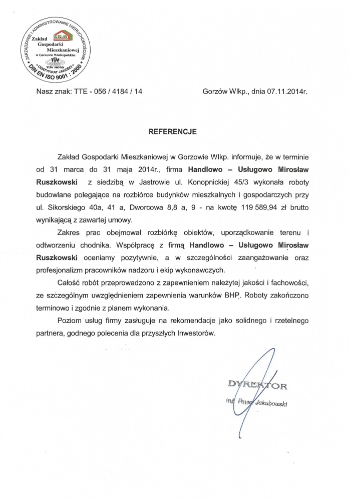 Referencje View the embedded image gallery online at: http://www.wyburzenia-ruszkowski.pl/referencje#sigFreeIde59122e3a6
